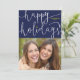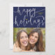 A whimsically modern scripted design wishing happy holidays in a bright yellow and navy colour palette. Personalise this design with your family photo, greeting, and name to make it your own. The navy background colour is easily changed in the "Customise it" settings too! Photography by Antonio Guillem