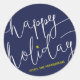 A whimsically modern scripted design wishing happy holidays in a bright yellow and navy colour palette. Personalise this design with your name to make it your own. The red background colour is easily changed in the "Customise it" settings too!