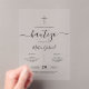 Celebrate this sacred milestone with a sleek and modern baptism invitation designed to honour tradition with a fresh twist. Crafted from striking black clear acrylic, this invitation features elegant, whimsical calligraphy that adds a handwritten, heartfelt touch to your celebration.