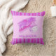 Cute whimsy horse head watercolor and graphic stripes girls name pillow. A perfect gift for a young pony, horse equestrian. Customise with your own name, currently reads Madeline. This original pony head in whimsical pink and purple is hand-painted in watercolor by Sarah Trett exclusively for her store www.mylittleeden.com on Zazzle.