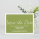 Whimsy Save the Date Announcement in olive green and white with a simple and fun script typography design. This trendy save the date invite is easy to customise with your wedding details. For more customisation options, click on the Customise It button.