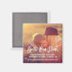 Rustic Photo Save the Date Square Magnet with your photo. Elke Clarke© Whimsical, trendy typography white script overlay design save the date engagement announcements you can personalise. For more style visit our shop at www.zazzle.com/epclarke.