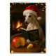 Humorous Christmas card featuring a white / cream colored Whippet reading 'The Cheese Tax at Home Regulations 2025' whilst trying to resist the urge to eat the cheese that someone's left on the table right in front of its nose!