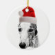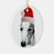 Adorable Whippet dog wearing a red Santa Hat Christmas ornament. These Whippet dog ornaments make wonderful gifts for Whippet owners or dog lovers.