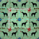 A Whippet with a scattering of bones and paw tracks. This design is intended to tile seamlessly.