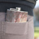 The flask itself is fine. It’s a cheap flask, obviously bought in bulk, however am prepared to overlook that. Given that it is a personalized item, I would have liked to have seen gift boxing instead of the generic packaging. Terrible printing, and/or quality. It’s a cheap, tacky vinyl. It is not cut straight and is also applied in a way that it is overhanging the bottom, causing the glue to catch on items and it will eventually roll and tear, damaging the wrap.