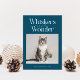Cute and funny Christmas holiday photo template card for cat owners featuring a typography text at the top that says "Whiskers and Wonder" with a photo of your kitty. You can add another picture on the back with a message. The background is teal.