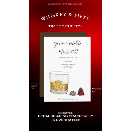Whiskey Watercolor Chocolate Truffles Birthday Invitation