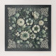 Soft florals intertwine with graceful Celtic knot motifs in a balanced folk composition filled with clover shapes, curling vines, and layered blossoms. Muted sage greens, warm ivory, and deep charcoal create a calm, heritage-inspired palette that feels both old-world and gently modern. The flowing symmetry and botanical details evoke cottagecore charm, Celtic folklore, and a quiet, storybook mood rooted in tradition and nature. AI generated artwork.