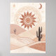Dive into the serene beauty of the desert with this minimalist Boho Chic masterpiece. Featuring rolling sand dunes, a radiant mandala-inspired sun, and an iconic saguaro cactus, all wrapped in warm, earthy tones for a tranquil and elegant aesthetic.