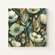 Delicate teal poppies rise like breath against a textured, charcoal-washed background. The petals, brushed with layered pigment and translucent detailing, float between abstraction and form. Swirling grey mists and scattered white speckles create a dreamlike depth, giving the impression of a twilight field remembered in fragments. Hand-drawn stems curl with quiet movement, echoing a modern folk-art rhythm. This design feels both grounded and ephemeral—a moment of calm blooming from complexity.
