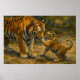 Celebrate the quiet strength of family in the wild with this realistic wildlife art print featuring a tender moment between a tiger and its cub. Set on a forest floor bathed in earthy tones, the adult tiger gazes down with calm affection as the playful cub reaches up to touch its face—a gesture of trust, connection, and love.