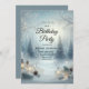 Set the tone for your winter celebration with this elegantly frosted invitation featuring a dreamy forest scene aglow with soft lantern light and freshly fallen snow. Muted blues, silvers, and whites create a serene and magical backdrop, perfect for cosy gatherings and sophisticated seasonal events. The tranquil landscape evokes warmth, wonder, and a touch of holiday charm, making it ideal for winter birthdays, showers, engagements, and more.
