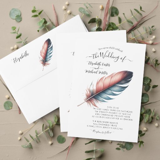 The Whispers of Grace: Feathered Elegance collection is designed to capture the soft beauty and symbolic meaning of feathers in a refined, artistic style. Featuring delicate, flowing feather imagery in pastel hues of blush pink and muted blue, this collection is perfect for couples who want their wedding stationery to reflect elegance, freedom, and lightness. Each piece is a gentle representation of grace and serenity, ideal for creating a calming, romantic atmosphere. From invitations and RSVP cards to seating charts and wedding favours, these designs offer a subtle yet impactful way to add natural beauty and a soft, ethereal touch to your special day. Personalise each item to make your wedding a true reflection of your love story.