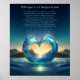 Imagine a poster that radiates serenity and inspiration, drawing the viewer into a world where nature merges seamlessly with emotion. This captivating artwork features a heart-shaped figure, sculpted entirely from glistening water. The curves of the heart shimmer with fluidity, evoking life’s boundless energy and its ability to adapt and transform. Its surface reflects the gentle hues of the surrounding sky, hinting at the harmony between humanity and the natural world.