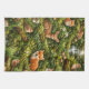 Hidden deep in a lush green forest, gentle foxes rest among moss, leaves, and soft woodland light.