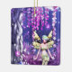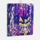 This enchanting design features a whimsical fairy perched gracefully on a wooden swing in a magical forest. The fairy has vibrant yellow-and-black butterfly wings adorned with delicate swirls, and she wears a green crop top with matching yellow striped leggings and boots. A crown of blue flowers rests on her mint-colored hair, adding to her ethereal beauty. The background is a dreamlike scene bathed in purples and blues, with glowing flowers, luminous butterflies, and sparkling stars scattered throughout. Twisting trees and hanging vines complete the fantastical setting, giving the whole image a surreal, otherworldly charm.