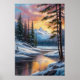 Embark on a serene journey through the heart of winter in the wilderness. A tranquil river meanders lazily through a snow-kissed landscape, while a distant forest stands adorned in icy splendour. Majestic mountains grace the horizon, their peaks disappearing into the mist. A frozen paradise captured in breathtaking detail.