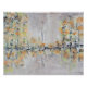 Impressionistic trees line a calm body of water, their reflections creating a mirrored effect. Soft autumn hues of orange and green are set against a muted background, emphasizing a serene and tranquil environment.