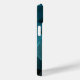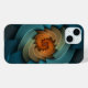 Phone case with "Whistling in the Dark", abstract art copyright © 2008, Susan Wallace. Razor edged spiral of vivid orange on a textured turquoise blue background.