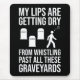 My Lips Are Getting Dry From Whistling Past All These Graveyards. This funny sarcastic accessory refers to men & women who try to stay cheerful despite all the scary news in our world today, like covid, climate change & war. Do you try to put on a happy face even when current events make you nervous and scared? The phrase for that is “whistling past the graveyard”. If you love sarcasm, humour and satire, this timely design is for you!