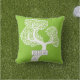 White abstract circle tree and name on lime green Outdoor Pillow. This lovely, fresh design displays a white abstract tree with circles instead of leaves and a frame with name on lime green background. You can remove the name if desired.