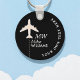 White aeroplane on (custom colour) black-keychain, personalised with name and text... special for pilots and airport professionals