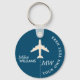 White aeroplane on (custom colour) blue-keychain, personalised with name and text... special for pilots and airport professionals