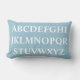 WHITE ALPHABET on BLUE pillow