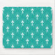 White on a turquoise-blue background, art-deco geometric seamless pattern.
