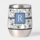 This insulated wine tumbler has a stylish, feminine floral pattern with a hand-drawn aesthetic. This classic black-and-white pattern has a modern feel softened with sketch look line art. Personalise this cute insulated wine tumbler with the owner's initial in light blue for extra personal detail. This design has six (6) different accent colours: red, pink, yellow, green, blue, and purple to highlight your monogram. Choose your favourite colour. This custom wine tumbler with your monogram is the perfect accessory for art walks, gallery strolls, wine tastings, parties, and outdoor events.
