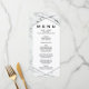 This white and black geometric marble dinner menu card is perfect for a modern wedding. The design features a hexagon geometric pattern with a faux marble texture decorating the spaces in the pattern. This menu can be used for a wedding reception, rehearsal dinner, or any event.