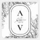 White and Black Greenery Wedding Monogram Square Sticker