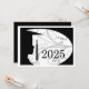 A silhouette of a young man in his cap and gown. Floral designs in the background. The back has a black background with white lettering for the graduation announcements.