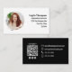 Make a lasting impression with this modern professional business card in a sleek black and white minimalist design, perfect for independent freelancers. Featuring your photo, QR code, and social media links, it’s designed to help you network effortlessly. The simple, clean layout highlights your business website and contact details, giving your brand a polished, confident, and timeless professional look.
