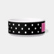 Black and white polka dot pattern. White polka dots on black and in the middle there is a hot pink rectangle where you can add your text.