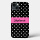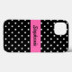 Black and white polka dot pattern. White polka dots on black and in the middle there is a hot pink band where you can add your name.