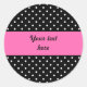 Black and white polka dot pattern. White polka dots on black and in the middle there is a hot pink rectangle where you can add your text.