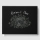 Our black and white floral rose gothic wedding guest books are made to match out Gothic Black Rose Wedding Collection. Dark black and bright white contrast with an abundance of dark floral motifs. Script font paired with serif font, lends to an artistic look that matches well with gothic style.
