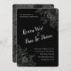 Our black and white floral rose gothic wedding invitations are made to match out Gothic Black Rose Wedding Collection. Dark black and bright white contrast with an abundance of dark floral motifs. Script font paired with serif font, lends to an artistic look that matches well with gothic style.