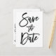 White and black wedding Save the Dates postcards with custom black text printed on white background
