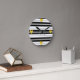 White and Black Stripes with Gold Hearts Round Clock