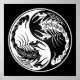This unique yin yang design features two stylised scorpions. Each arachnid curves around the edge of the tear drop with it's stinger curling back towards the body. The scorpions pincers are held just above the head and it's legs are stretched out in an aggressive pose. This stylish pattern is a stunning example of this traditional symbol for the balance of nature.