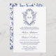 White and Blue Chinoiserie Crest QR Code Wedding Invitation