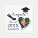 Create unique white and blue graduation napkins for the class of 2025 graduate with a heart-shaped photo (use the template to upload your picture), Congrats saying, and grad's cap and diploma illustrations. It's easy to change the background colour inside the design tool to match your school colours. Please, personalise with the graduate's name and surname, upload a custom photo, and add a year before ordering.