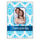 Easily personalise this modern elegant sophisticated white and blue damask pattern design by adding your own photo of your loved one and name or text to the templates to make a unique customised product. Visit the PHOTOGIFTZ STORE for matching products. The template photo image text and can easily be replaced with your own, Photographs of the same 4 x 3 dimension should replace the template image exactly. If your photo is of a different dimension you may have to use CUSTOMIZE to adjust the size, of the photo and text, by drag and drop.