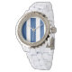 A pretty classic design featuring white and blue stripes. Customise as desired. Change the style of watch as desired.