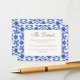 Inspired by traditional Italian patterns, this white and blue design was originally hand-drawn and is therefore exclusive to our store. This allows you to effectively brand your wedding in a stylish and classy manner, drawing from the traditional Mediterranean aesthetic. Whether your wedding is in Italy, Greece, surrounding locations, or you simply want to infuse this essence into your celebration, our Sicilian-style, Italian Blue Enclosure Cards are tailored for just that . They are fully customisable, allowing you to personalise them to suit your wishes. To get started, simply click on 'Personalise this template.' If you're searching for matching wedding décor within this theme, explore our full collection – an easy and enjoyable way to prepare all the lovely details for your special day. If including a QR code to your wedding website, do not make it too small and ensure it is good quality. Please feel free to reach out if you have any requests or queries.