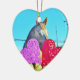 White and Brown horse Valentine Hearts Ceramic Tree Decoration