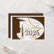 A silhouette of a young man in his cap and gown. Floral designs in the background. The back has a brown background with white lettering for the graduation announcements.